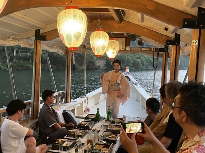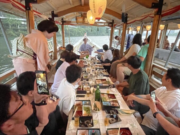 船では三味線と芸子さんの踊りと楽しませて頂きました。