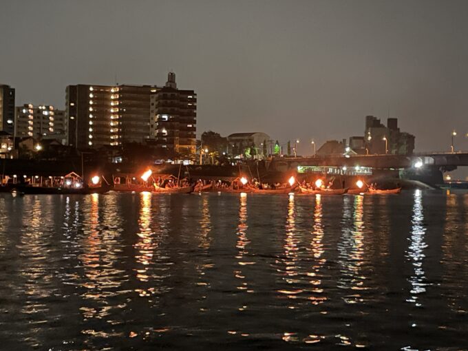 日が暮れるといよいよ鵜飼が始まります。