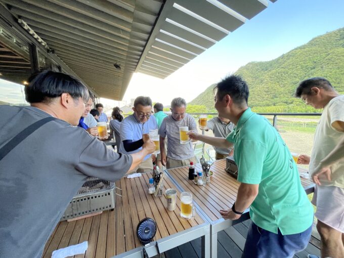 講習会後は鵜飼ミュージアム併設のBBQ場で鵜飼を俯瞰してみながら懇親会。