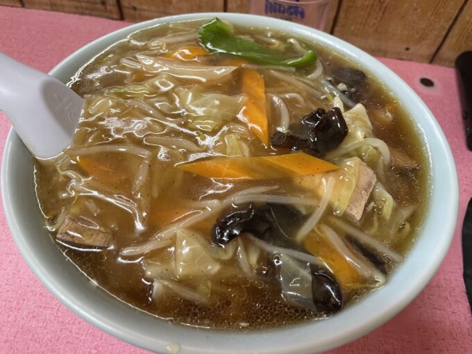 お昼ご飯は現場近くの中華料理店でサンマー麺。