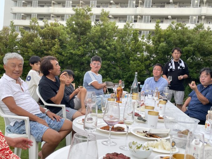 海が真横ということで、お子様が小さいメンバーは子連れで潮遊びからのBBQとなりました。