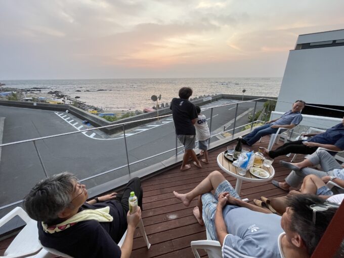 日没前は海側のテラスデッキに移動して夕陽を見ながら楽しませていただきました。