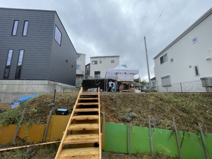高低差がある敷地です。