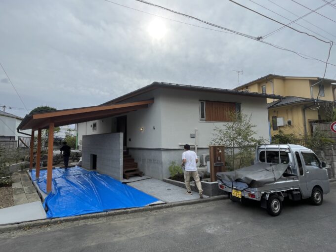 土地探しからご一緒させていただいたお家で、ゆったりとした敷地に近隣の目線を避けるように「への字」型に平家での計画としました。