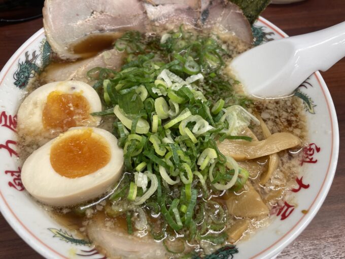社内検査後は、帰り道にある魁力屋で京都背脂醤油ラーメン。
