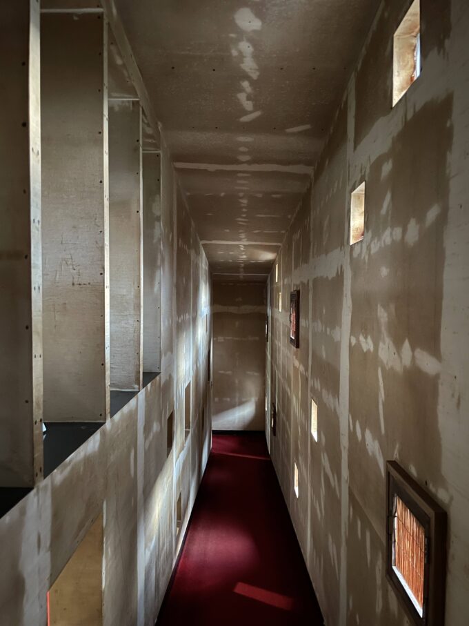 外観からも分かるように、床が斜めの廊下で繋がっているお家です。