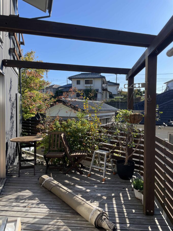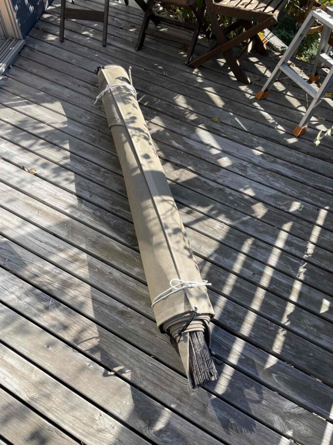 ウッドデッキの日射遮蔽タープも取り外し。