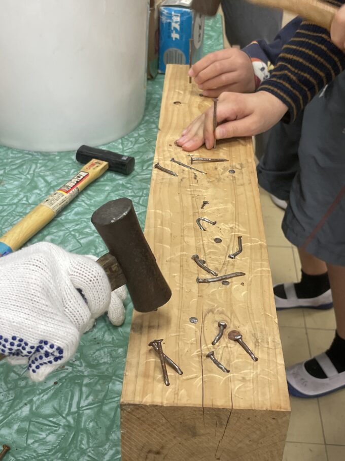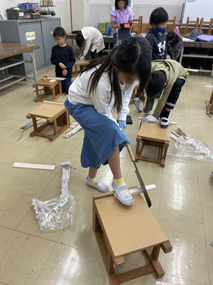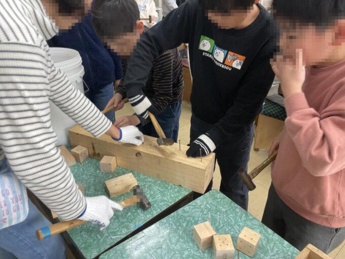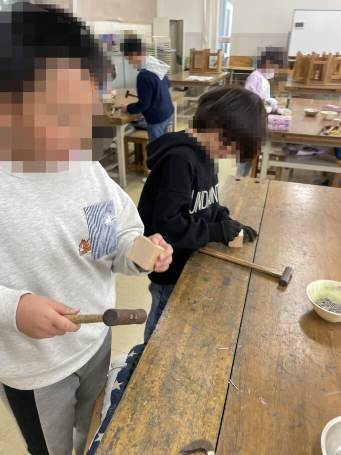 4年生の「のこぎりザクザク」と3年生の「釘打ちトントン」です。