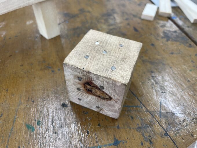 スタッフの三塚が杉の端材を正立方体に加工してくれていました。