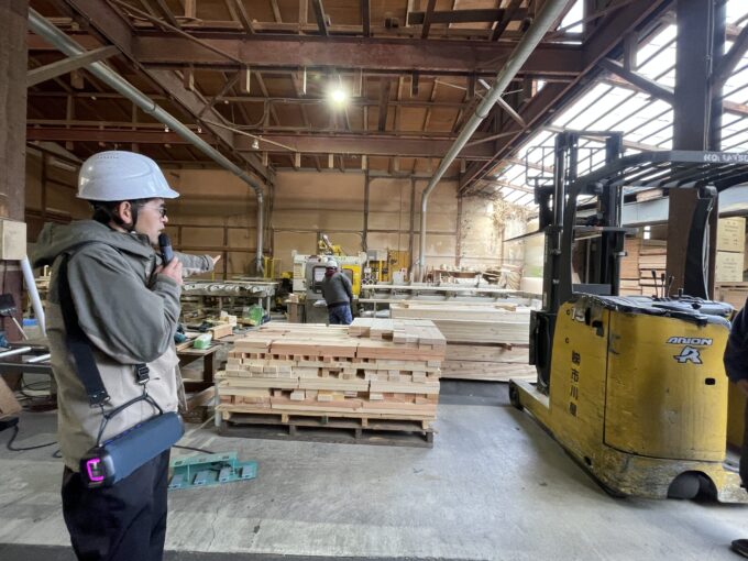 県産材供給の多い市川屋さんのプレカット工場を見学。