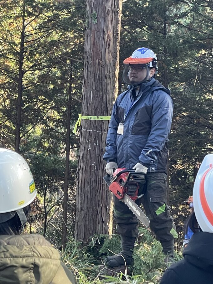 伐倒の様子はなかなか見る機会も少ないので、皆様真剣にご覧になっていました。