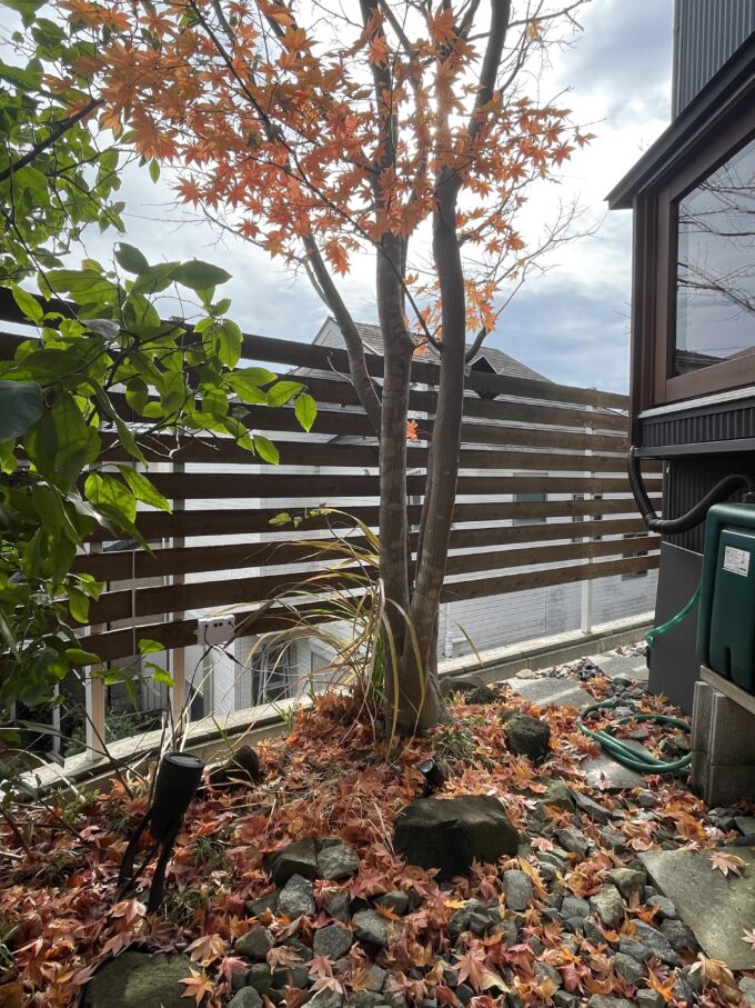 この右側に植えたモミジが立派に成長しました。