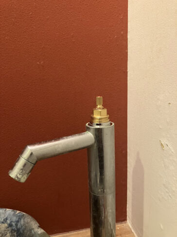 今回は、トイレの手洗い。蛇口からポタポタ水が漏れてきます。 水栓をばらします、上の蓋を外してカバーも外します。バルブが見えました。頭のバルブを取り替えます。水垢で固着して外れません、水栓を天板から外し…