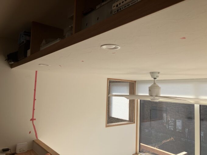 天井の下地は45㎝間隔になるので少しネットがたるみます。
