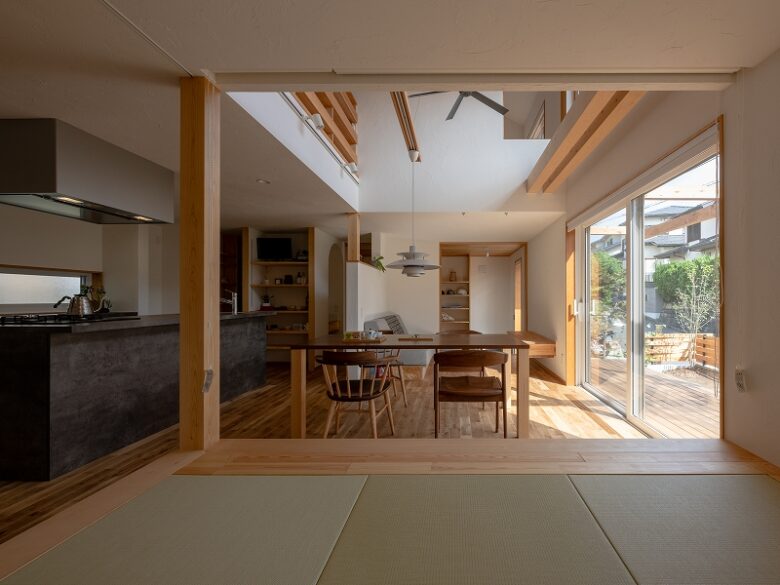 こちらの事例は、サーフィンやキャンプなどのアウトドアを楽しむご家族のために設計された「PLATEA(広場・平土間)のある家」。