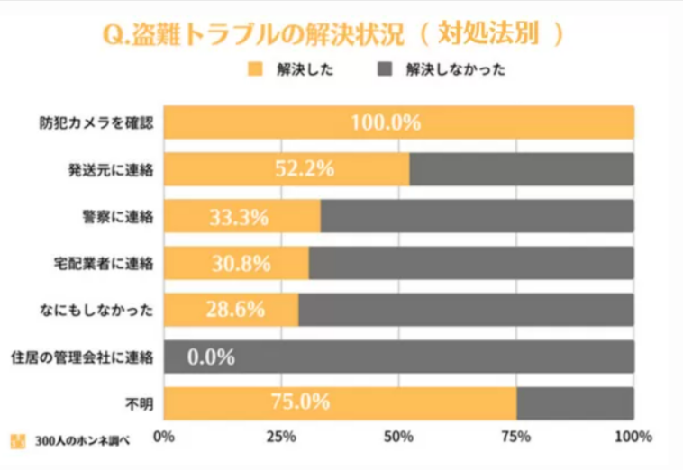 「なにもしなかった」で解決しているケースもありますが、他の対策に比べて解決率は低いため、盗難にあう前の対策・盗難にあった後の対策は積極的に行いましょう。