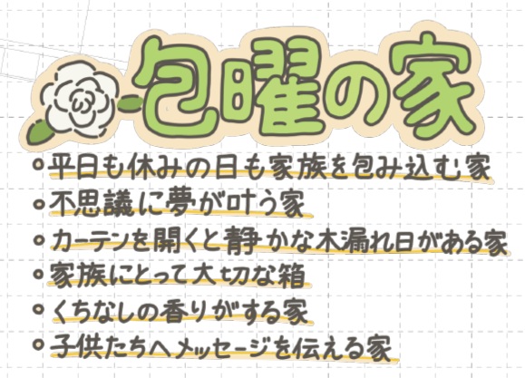 平日も休日も、家族をやさしく包み込む「包曜の家」が完成しました。