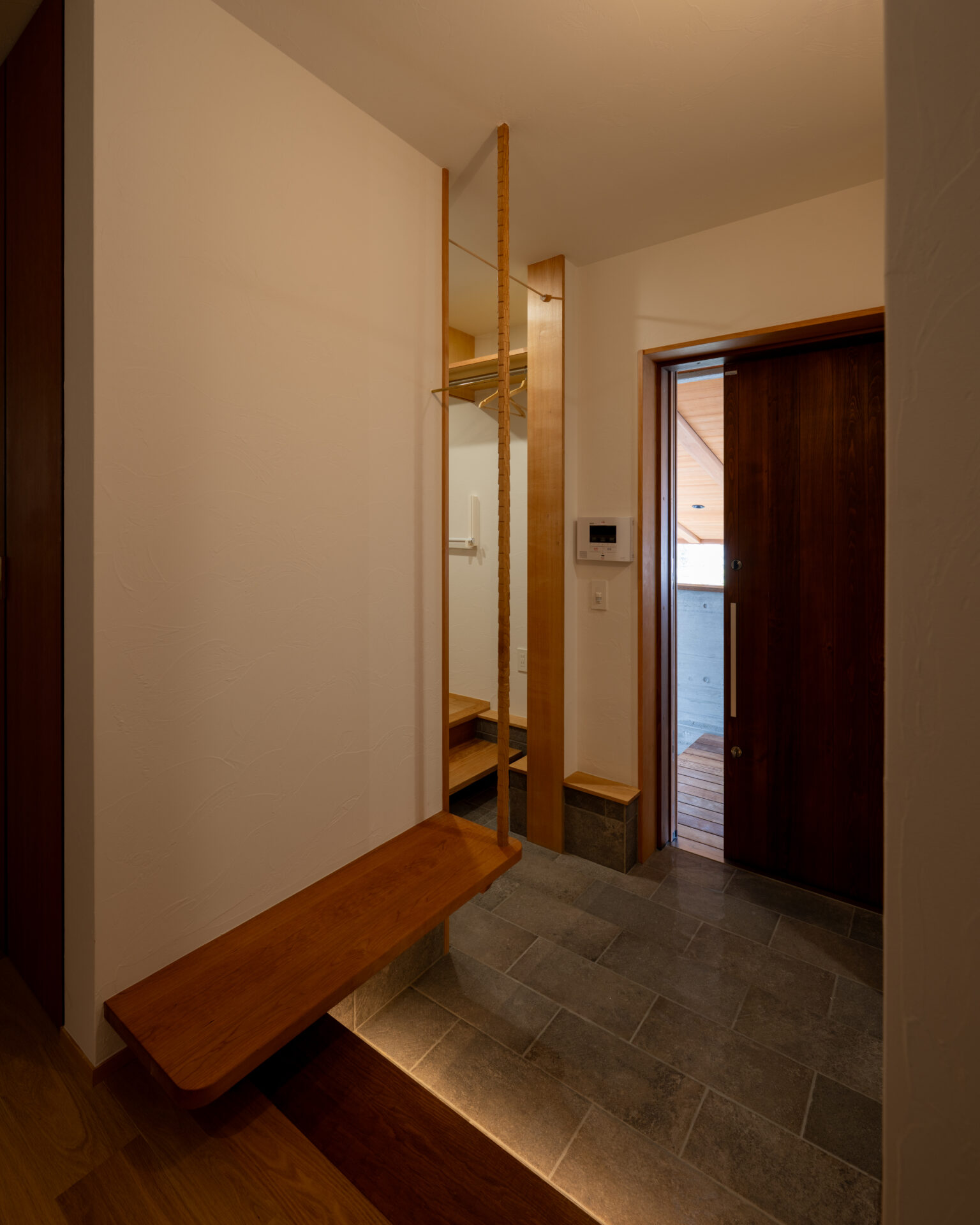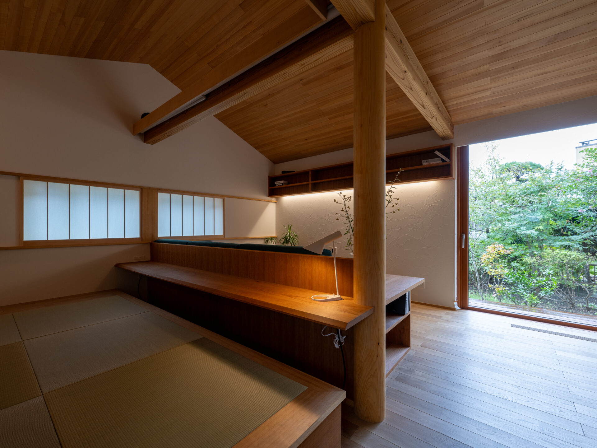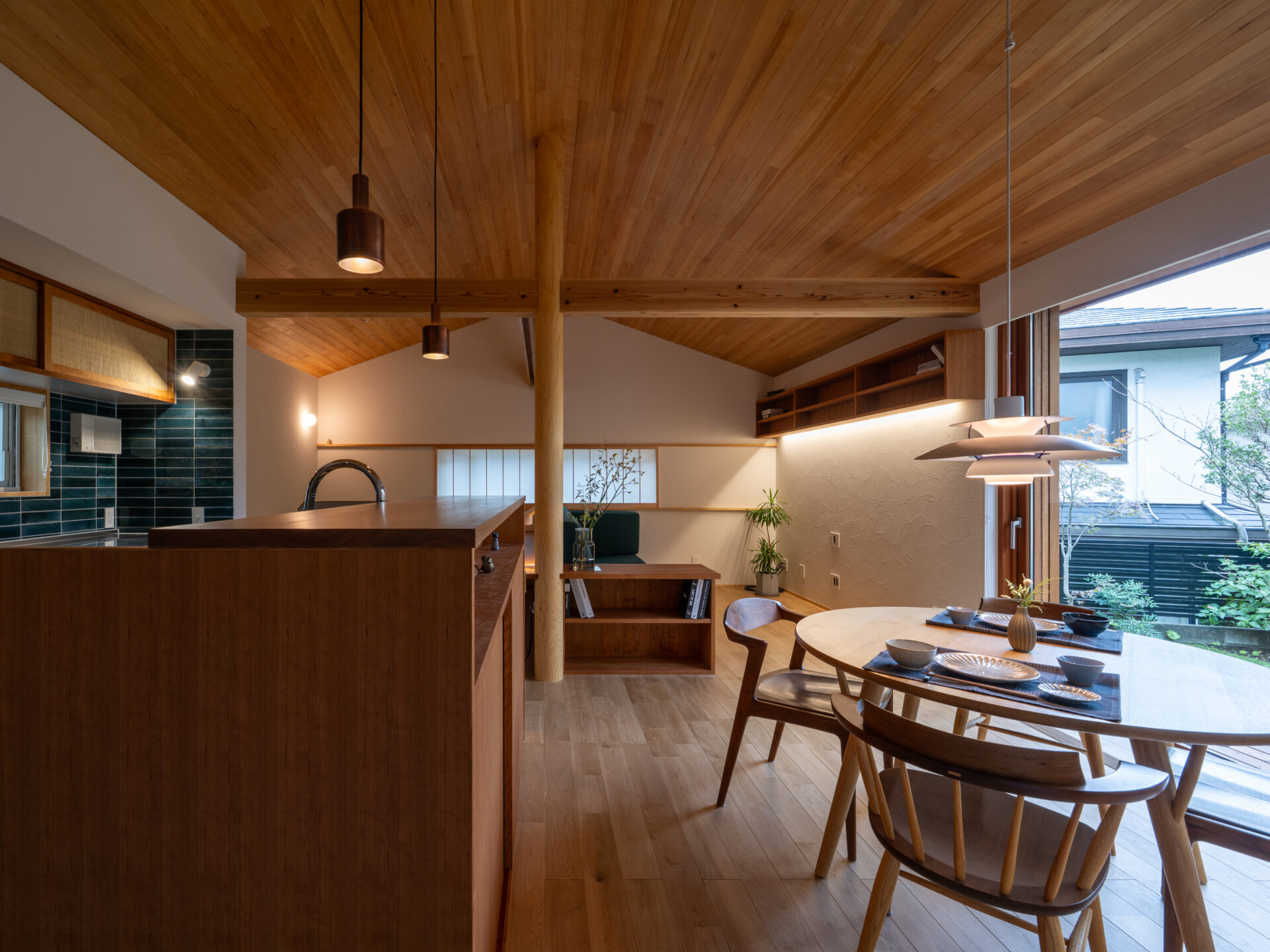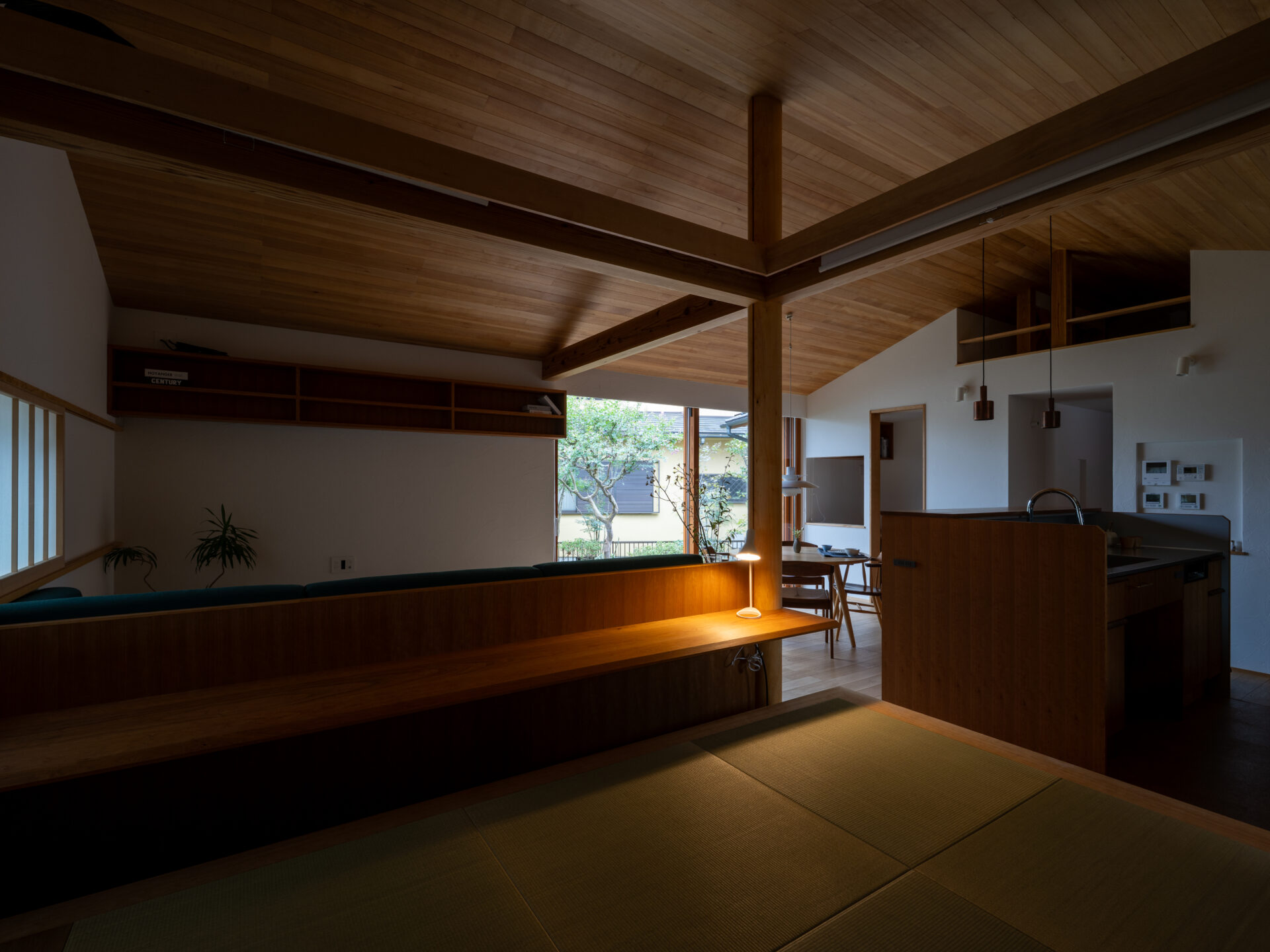 緩やかに庭を囲い込む構造と、厳選された素材によって丁寧にしつらえられた空間で、しっとりと穏やかな時間を過ごす。