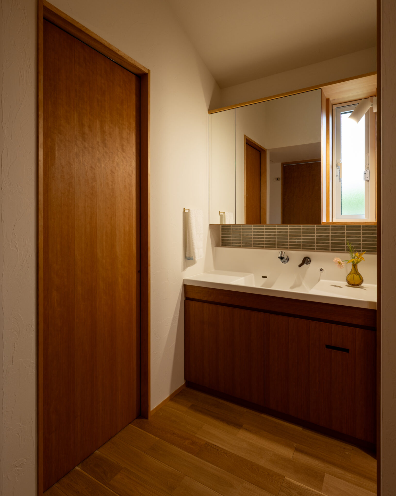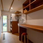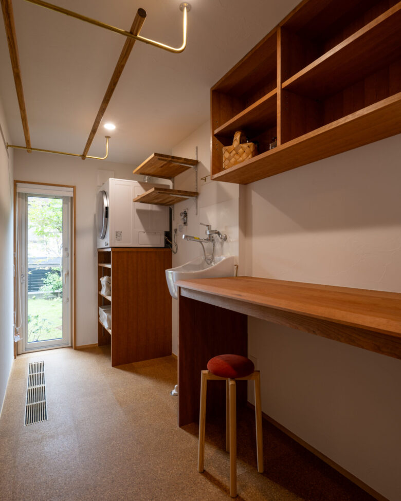 キッチンやランドリースペースなども、すっきりと動線良く計画することで、日々の家事効率を高めています。