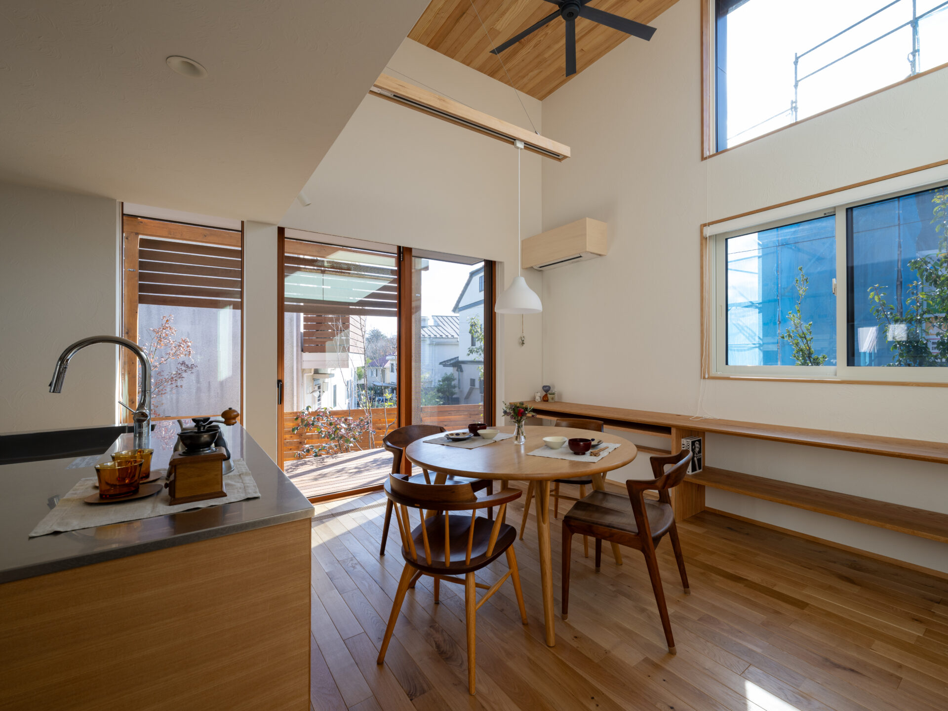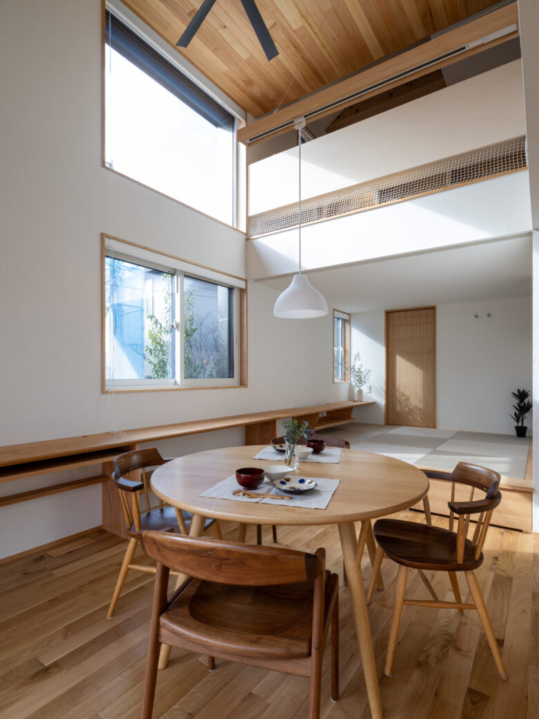 住まいの中心となるダイニングは、自然な光を取り込める吹き抜けを採用。