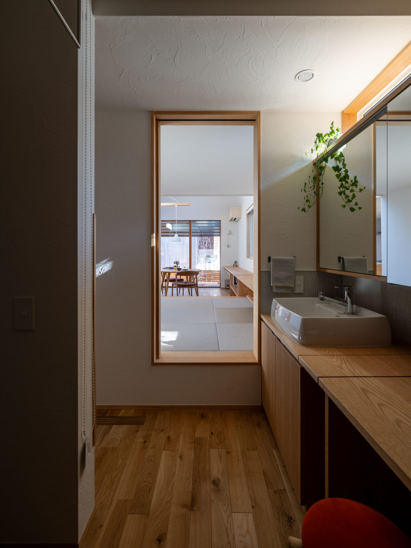 ランドリールームからウォークインクローゼットへの動線、適材適所の収納計画により、家事の負担を軽減し、心にゆとりをもたらします。