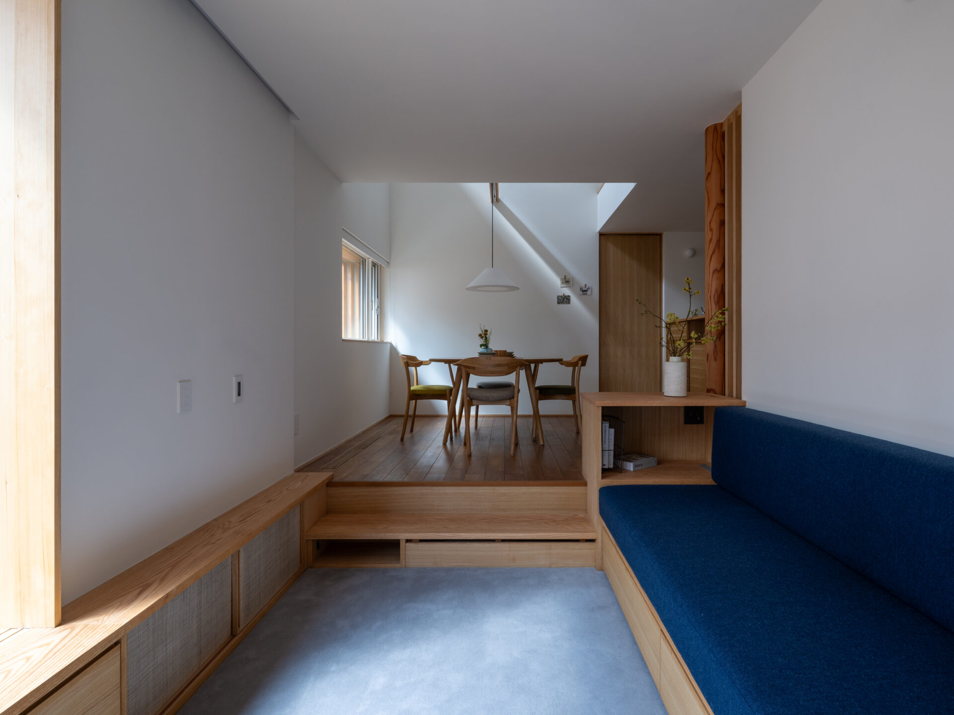 段差が生む心地よい「こもり感」が、家族や仲間を自然と団欒の場へと引き寄せます。