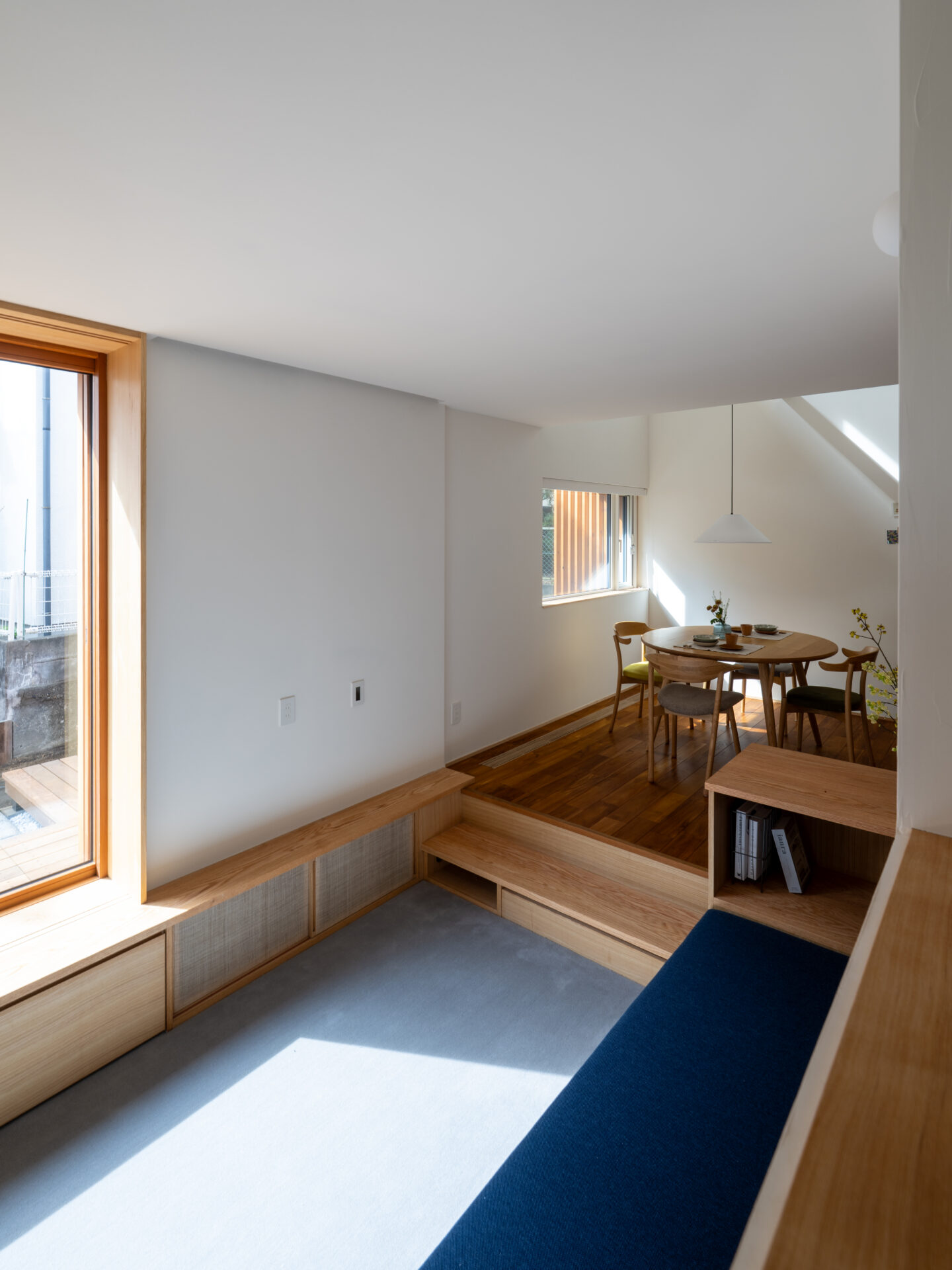 「座る」「寝転ぶ」「段差に腰掛ける」といった多彩な居場所を設けることで、同じ空間にいながら、それぞれが自分のペースでくつろぐことが出来ます。