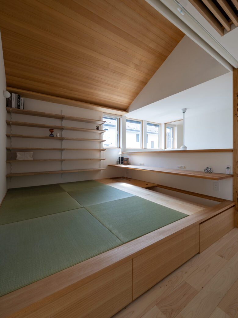 2階には、家族の気配を感じつつも静かに過ごせるセカンドリビング、小上がり空間も併設。